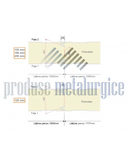 Grosime panouri sandwich cu spuma poliuretanica pentru acoperis: intre 120-200 mm;